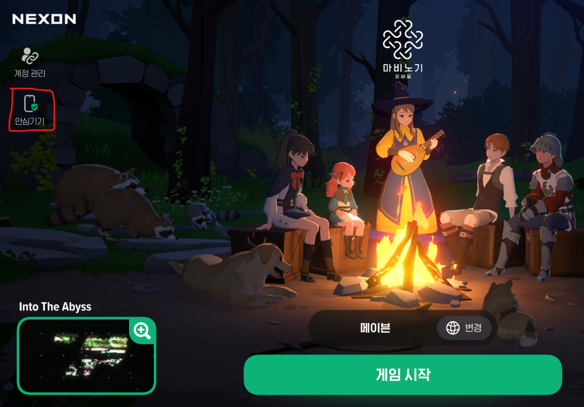 로그인 화면에 "안심 기기" 버튼이 있습니다.
