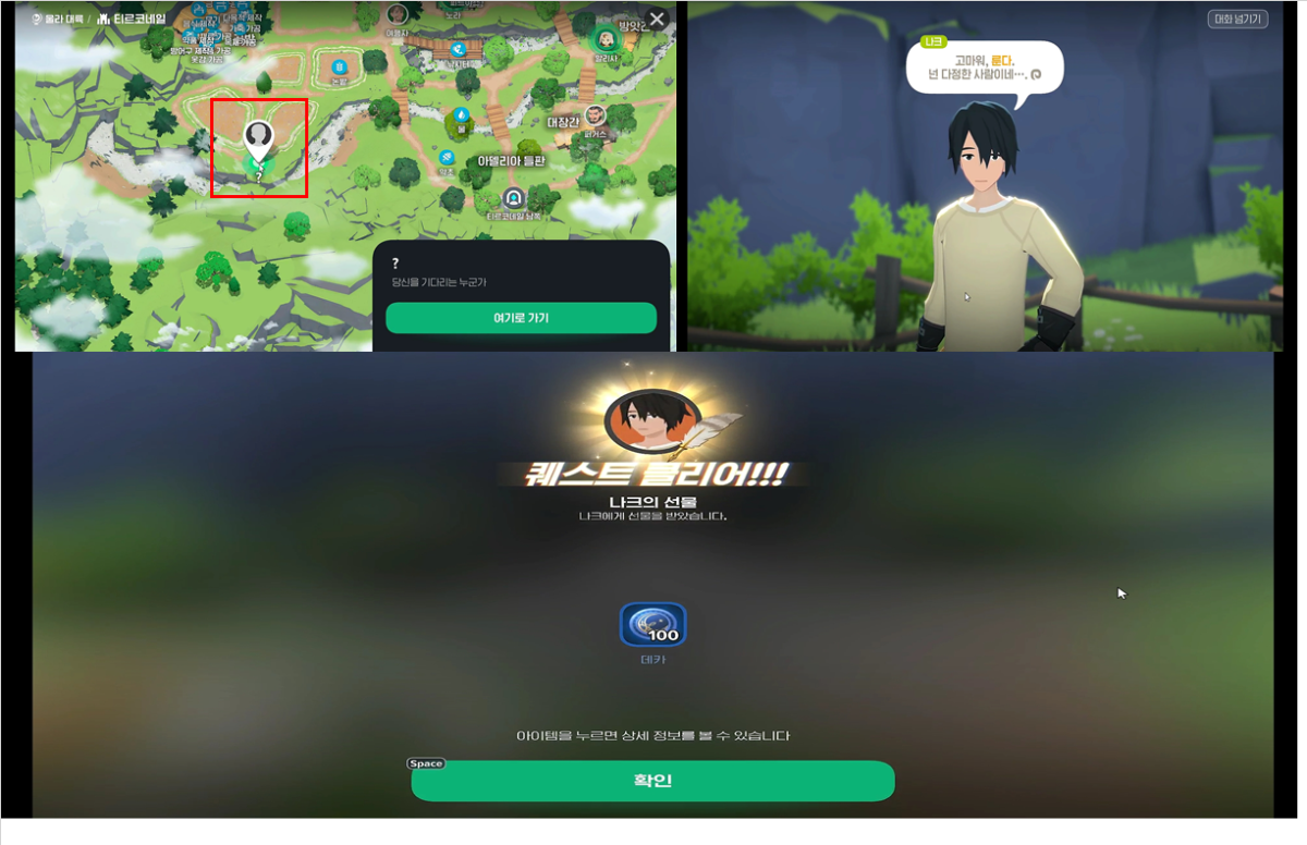찾아가셔서 간단하게 대화 주고 받으시면 데카코인 100개 받으실 수 있으니 참고 부탁드립니다!