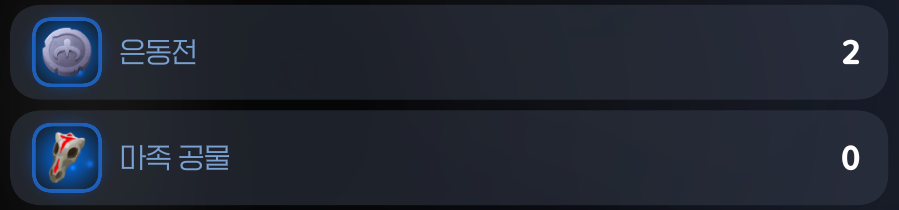 1. 마비 모바일의 핵심 재화인 은동전과 마족 공물입니다.