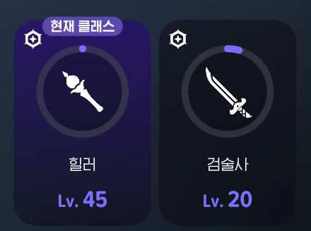 2. 클래스 레벨은 전직 후 직업 엠블렘을 착용하면 레벨업 하실 수 있습니다.