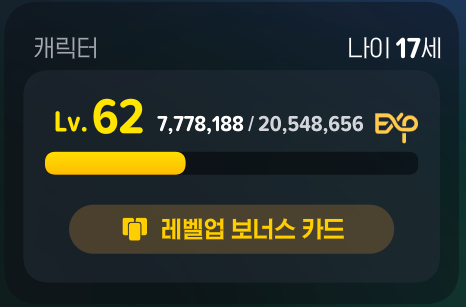 1. 캐릭터 레벨은 고유 캐릭터의 레벨이며, 레벨마다 보너스 카드를 선택해 효과를 얻으실 수 있습니다.