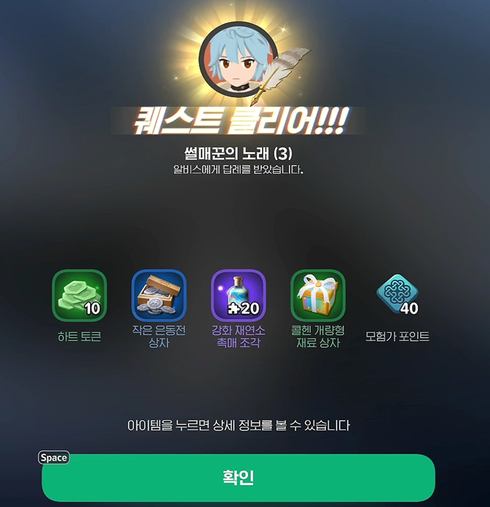 보상은 은동전 1개와 하트토큰 등을 줍니다! 깨시는데 약 5분밖에 안걸리니 참고하세요!