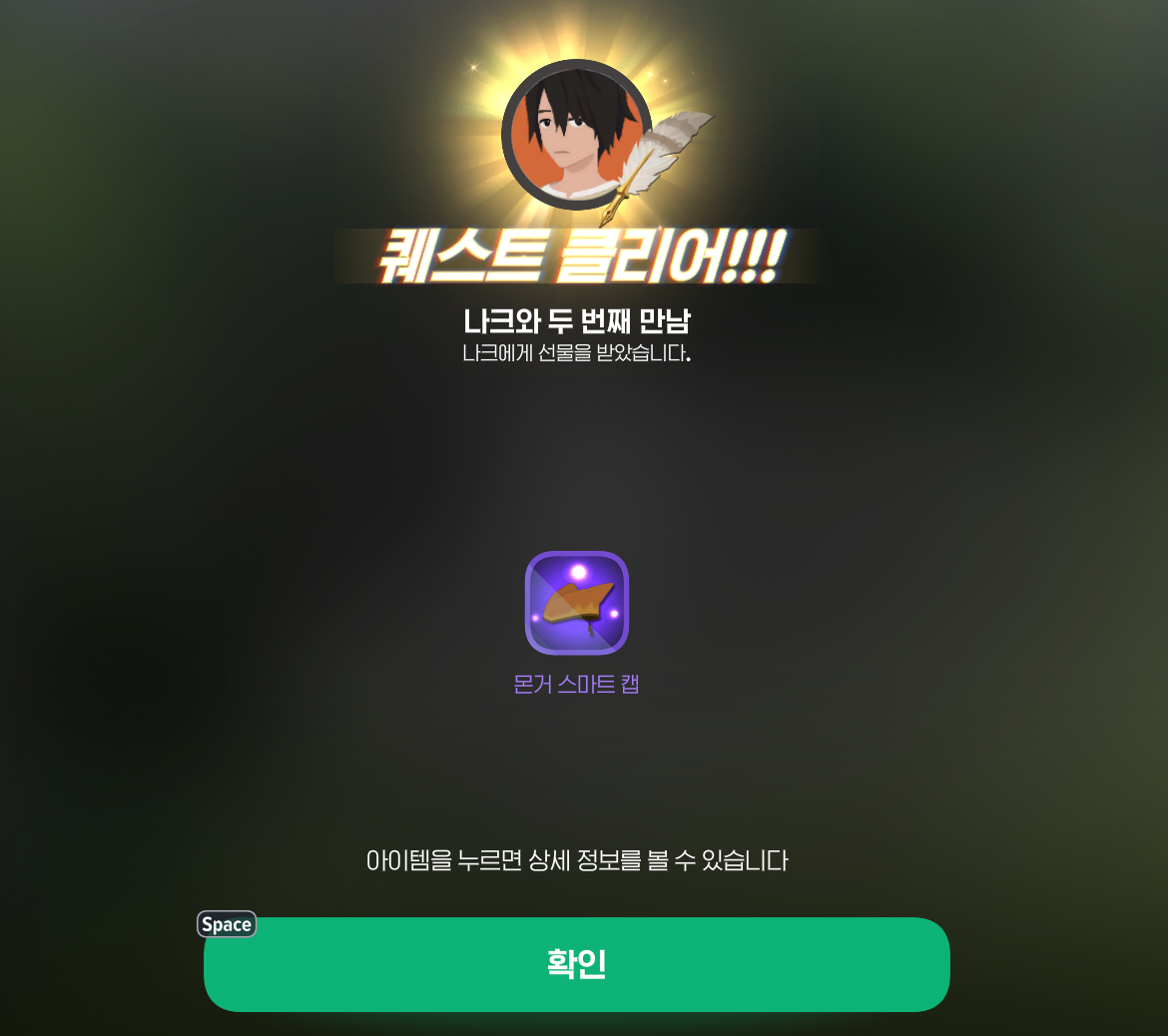 보상은 "몬거 스마트 캡" 이라는 패션 아이템을 줍니다!!