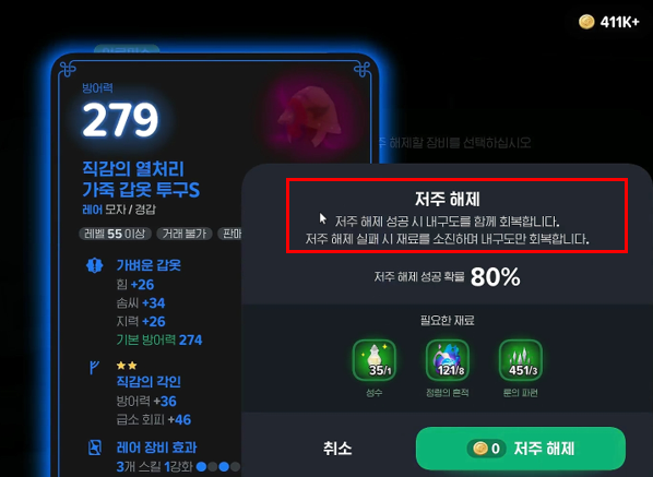 저주 해제에는 상기 3가지 재료가 필요하니 참고 부탁드립니다.
