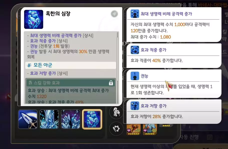 궁극 강화를 통해 방어력과 보호막이 강화되면 팀 전체의 안정감이 크게 올라가요. 무과금 유저라면 기본 영웅인 에반을 잘 키우는 게 정말 중요합니다.