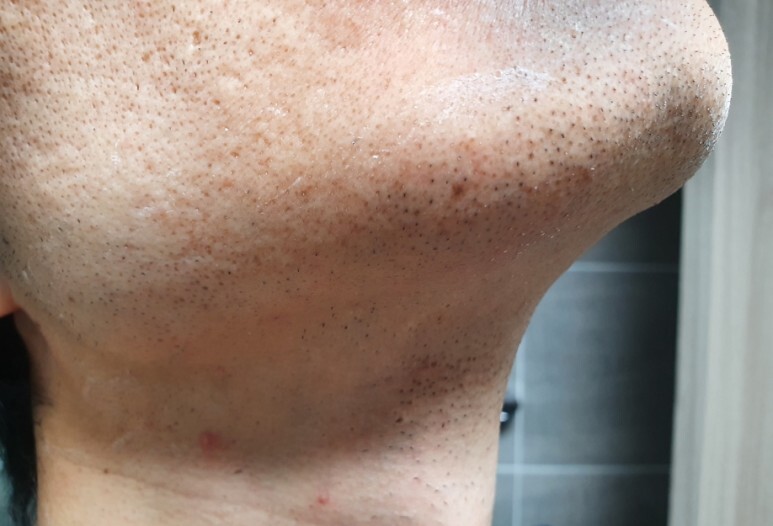 구입한 면도기로 직접 면도를 해보았습니다. 쉐이빙 폼을 별도로 사용하고 있지 않아 폼 클렌징으로 세안을 하면서 생긴 거품으로 면도를 하는 편입니다. 부분 적으로 하다 보니 거품이 더 없는 상태에서 면도를 진행했네요. 면도를 하면 일부 면도기에서는 수염이 잘릴 때마다 따가움이 느껴지는 경우가 있는데요. 거품이 많이 없음에도 따가움이 느껴지지 않고 잘 잘리는 것을 볼 수 있습니다.