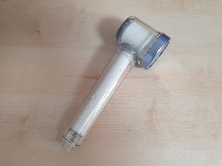 샤워기 본체를 꺼내 살펴보면 헤드 부분과 손잡이 부분에 모두 2개의 필터가 들어가 있는 것을 확인할 수 있습니다. 손잡이 부분에서 1차적으로 필터가 되고 헤드 부분에서 2차로 필터가 되는 구조입니다. 1차 필터가 있는 손잡이의 경우 15cm로 긴 손잡이를 제공하고 있어 필터 하면서 약해지는 물의 수압을 최소화합니다. 헤드에 물이 나오는 부분은 미세 홀로되어 있어 기존에 수압이 약했다면 수압이 상승하는 효과까지 누릴 수 있습니다.
